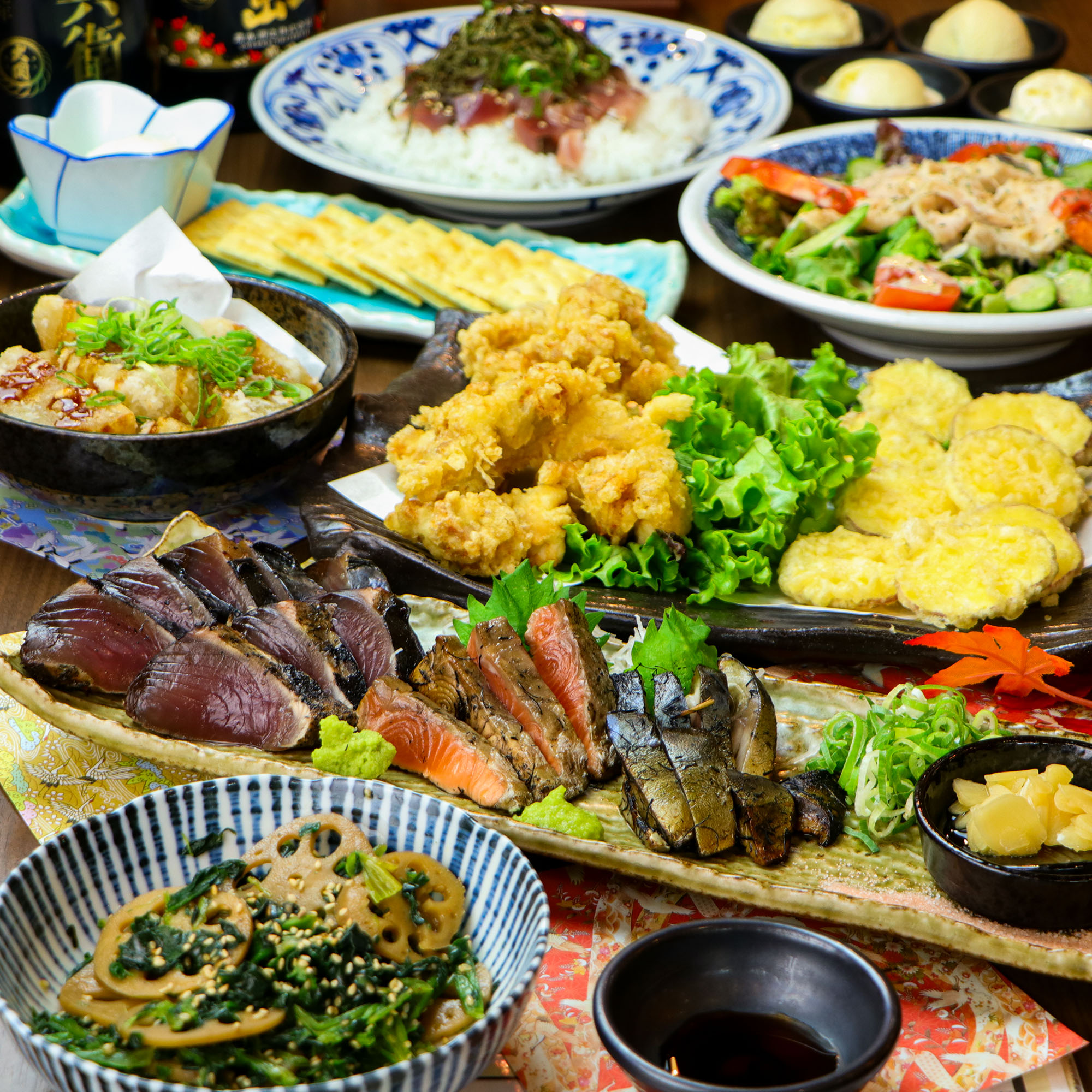 【宴コース】名物鰹の藁焼き塩たたきなど◎生ビール付!日~木3h/金土祝前2h飲み放題◆3500円